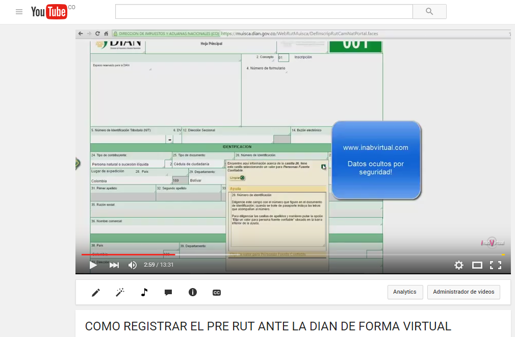 http://inabvirtual.com presenta el video tutorial "COMO REGISTRAR PRE RUT ANTE LA DIAN DE FORMA VIRTUAL". Específicamente solucionar la duda de porqué no se puede ingresar nombres en el formulario de pre rut. Esperamos sea de su agrado y ayuda. Recuerde dar "Me gusta" y compartir.