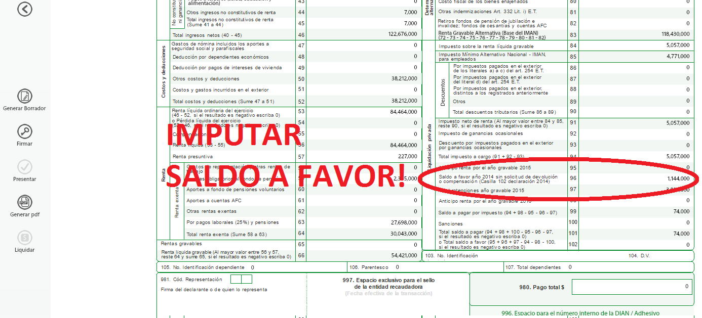 Algunos contribuyentes han interpretado que es obligatoria la imputación del saldo a favor en la declaración, interpretación a la que se ha llegado después de leer las instrucciones que trae por ejemplo el formulario para la declaración de renta.