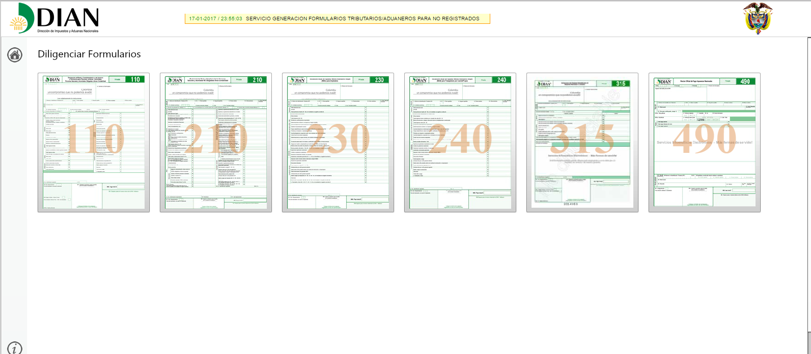 Los usuarios que estén obligados a presentar sus declaraciones por medios electrónicos no deben diligenciar estos formularios a menos que haya una contingencia expresamente publicada por la DIAN por casos en los que la plataforma del MUISCA esté fallando.