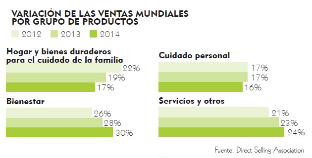 La industria global de la venta directa, en donde se encuentran las empresas MLM, facturó US$182.823 millones en 2014, teniendo una variación de 6,4% con respecto al año inmediatamente anterior, según cifras de Global Direct Selling (GDS).
